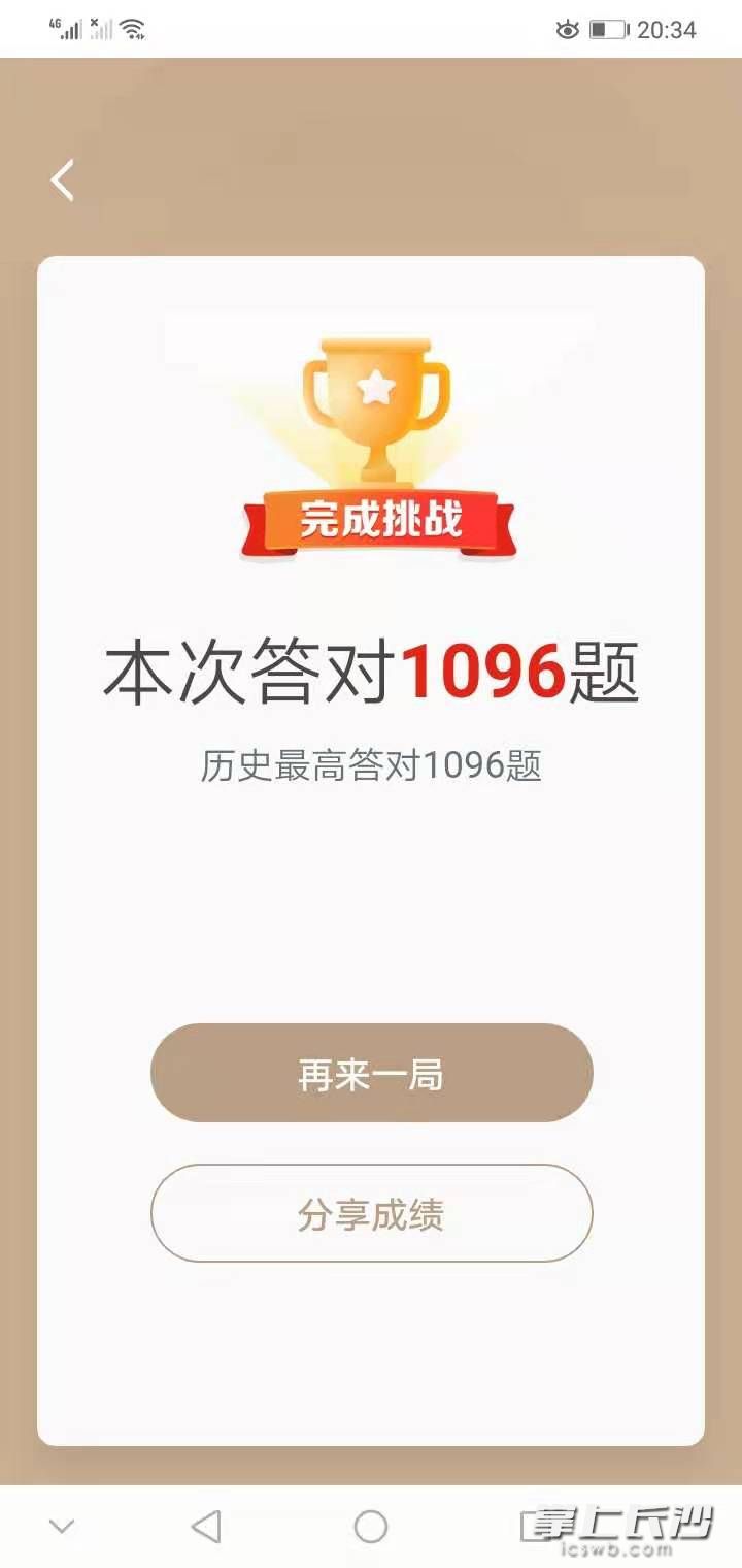 长沙晚报掌上长沙11月14日讯 (通讯员 黄勇)自从“学习强国”有了“挑战答题”版块后,“学霸”们又掀起了新一轮学习挑战的热潮。近日,宁乡市菁华铺乡嶂山村吴勇因“学习强国”“挑战答题”火了一把,56分钟内一口气通关1096道题,平均每道题目仅耗时3-4秒,成了大家眼中名副其实的“挑战答题”达人。