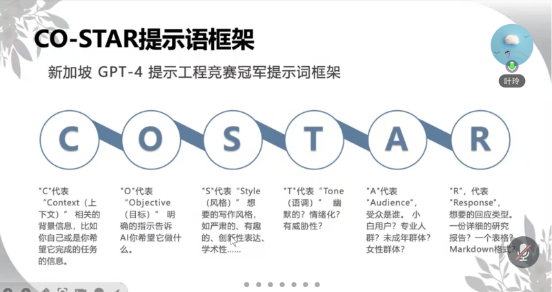 会上,叶玲表示,AI在实际应用中,往往会因为数据偏差、知识固化及意图误解等问题产生“幻觉”现象。这种现象会导致AI在处理信息和生成回复时,出现错误判断或虚假信息。为了帮助大家更好地理解和应对这一问题,叶玲详细介绍了两种有效的提示语结构——RTGO和CO-STAR,能够有效减少AI在推理中的偏差,更准确地理解检索意图,从而降低“幻觉”现象的发生概率。为强化学习效果,叶玲组织线上实操环节,引导社工用所学方法设计活动方案并演示。此外,结合社会工作实务特点,叶玲深入探讨AI在撰写半年度工作总结、个案文书及新闻稿等场景中的应用,她指出,AI只是助力,而不是专业词汇的堆砌。