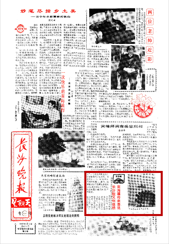 南海疆传来喜讯 长沙舰又创佳绩(1987年8月9日) 稿源:长沙晚报2018-04-13 11:20 您的浏览器不支持 video 标签。 您的浏览器不支持 audio 标签。 长沙晚报1987年8月9日讯 解放军南海舰队长沙舰所在支队指战员认真学习科学文化知识,努力掌握现代化武器装备,在最近一次海上实弹射击训练中,他们打出了历年来最好成绩。干部战士高兴地说,要向家乡人民报喜。 【作者:】 【编辑:易隽】 长沙晚报社版权声明 关键词:长沙舰 实弹射击训练>>我要举报