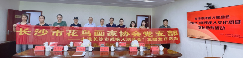 长沙晚报掌上长沙5月19日讯(通讯员 唐铭)5月19日,第三十三次全国助残日即将到来之际,2023年残疾人文化周暨文化助残活动在长沙市残疾人联合会举行。市文联二级调研员谢胜文,童治军、李砺、范飞、黄铁峰、郭跃、周群艺、谭演湘、甘琳利、王小锋等10位书画艺术家参加活动。