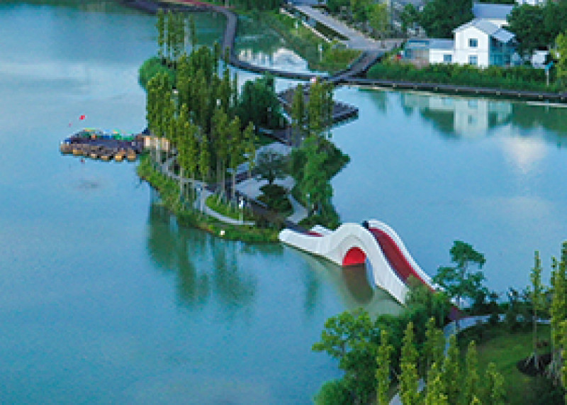 在后湖综合整治过程中,还新建了2公里栈道栈桥、3公里环湖自行车道和绿道以及4个湖心岛。驳岸景观按照“五色”后湖的理念,运用乡土植物品种,修复生态基底,激活场地生机,塑造特色活力空间,以植物的花色、叶色等自然观赏属性,打造生机盎然的多彩花园。