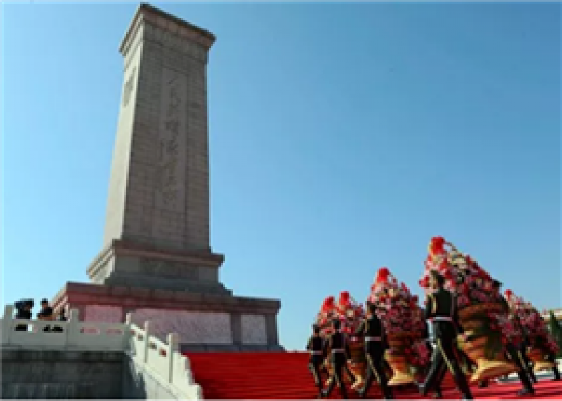 纪念碑前,4000多名各界代表手持鲜花,列队肃立。他们中有年逾九旬的老战士、老同志,有胸前佩戴着红飘带的烈士亲属,有国家勋章和国家荣誉称号获得者代表,有参加全国民族团结进步表彰大会的代表,有朝气蓬勃的青年学生和少年儿童。