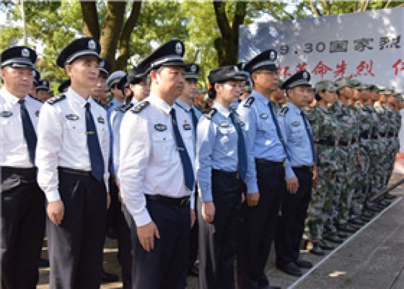 “礼兵就位!”随着号令,60名三军仪仗兵迈着铿锵有力的步伐,正步行进到纪念碑前持枪伫立。