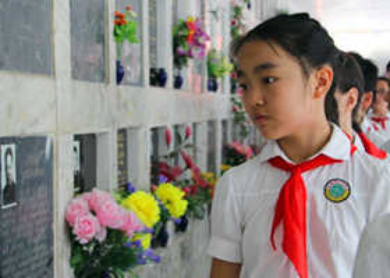 “我们是共产主义接班人,继承革命先辈的光荣传统……”默哀毕,300多名少年儿童手持鲜花,面向人民英雄纪念碑高唱《我们是共产主义接班人》,并致少年先锋队队礼。