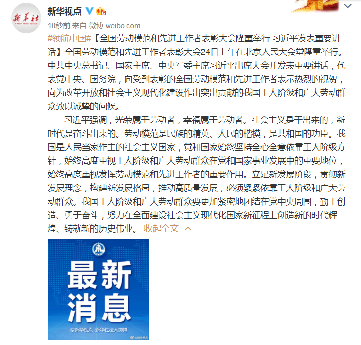 全国劳动模范和先进工作者表彰大会隆重举行 习近平发表重要讲话