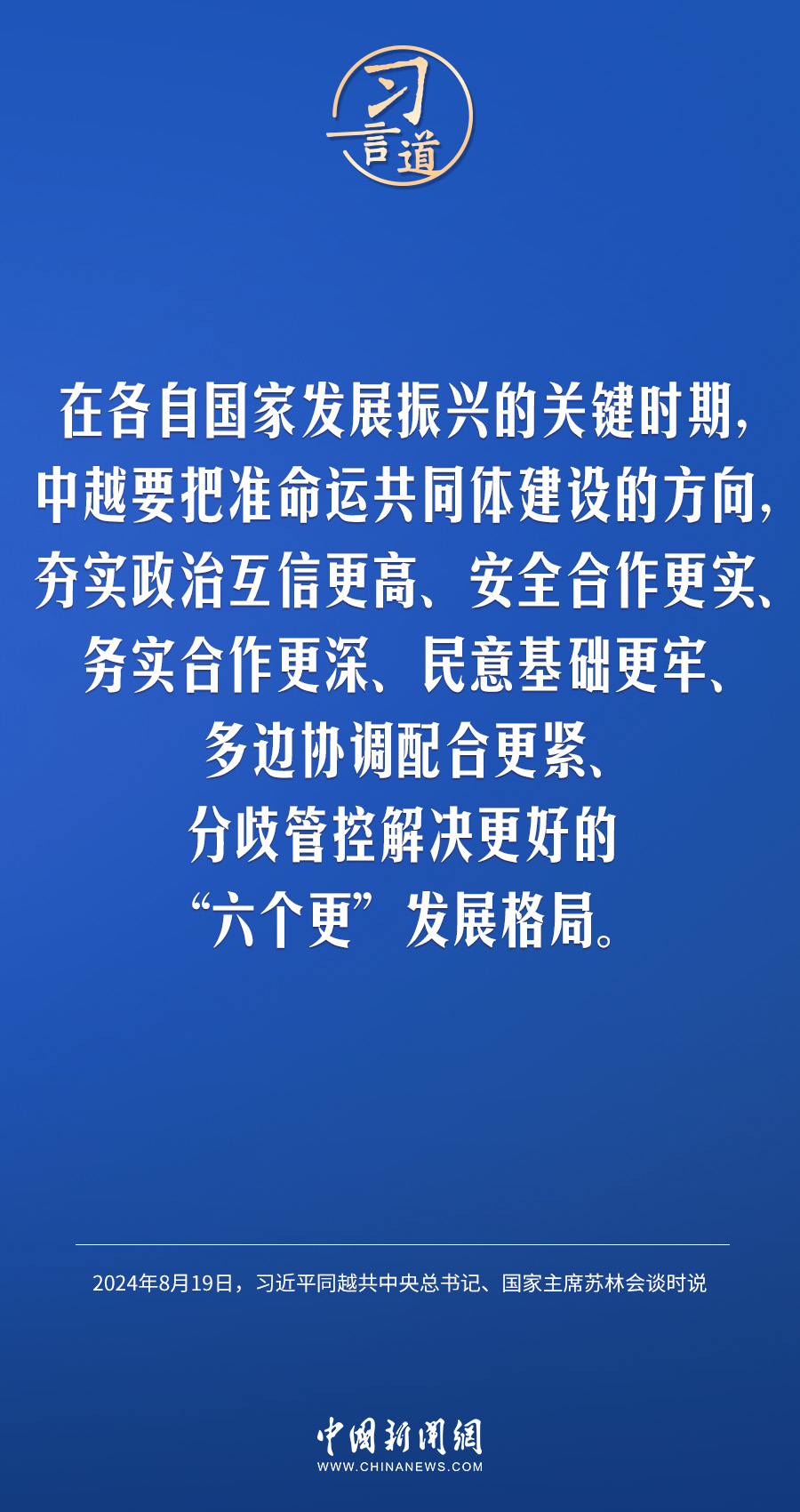 习言道|持续深化具有战略意义的中越命运共同体建设 稿源:中国新闻网2024-08-20 13:12 相链区块链 该文章已上链>> 您的浏览器不支持 video 标签。 您的浏览器不支持 audio 标签。 8月19日,中共中央总书记、国家主席习近平在北京人民大会堂同来华进行国事访问的越共中央总书记、国家主席苏林举行会谈。习近平指出—— 【作者:】 【编辑:易隽】 长沙晚报社版权声明 关键词:习近平 >>我要举报