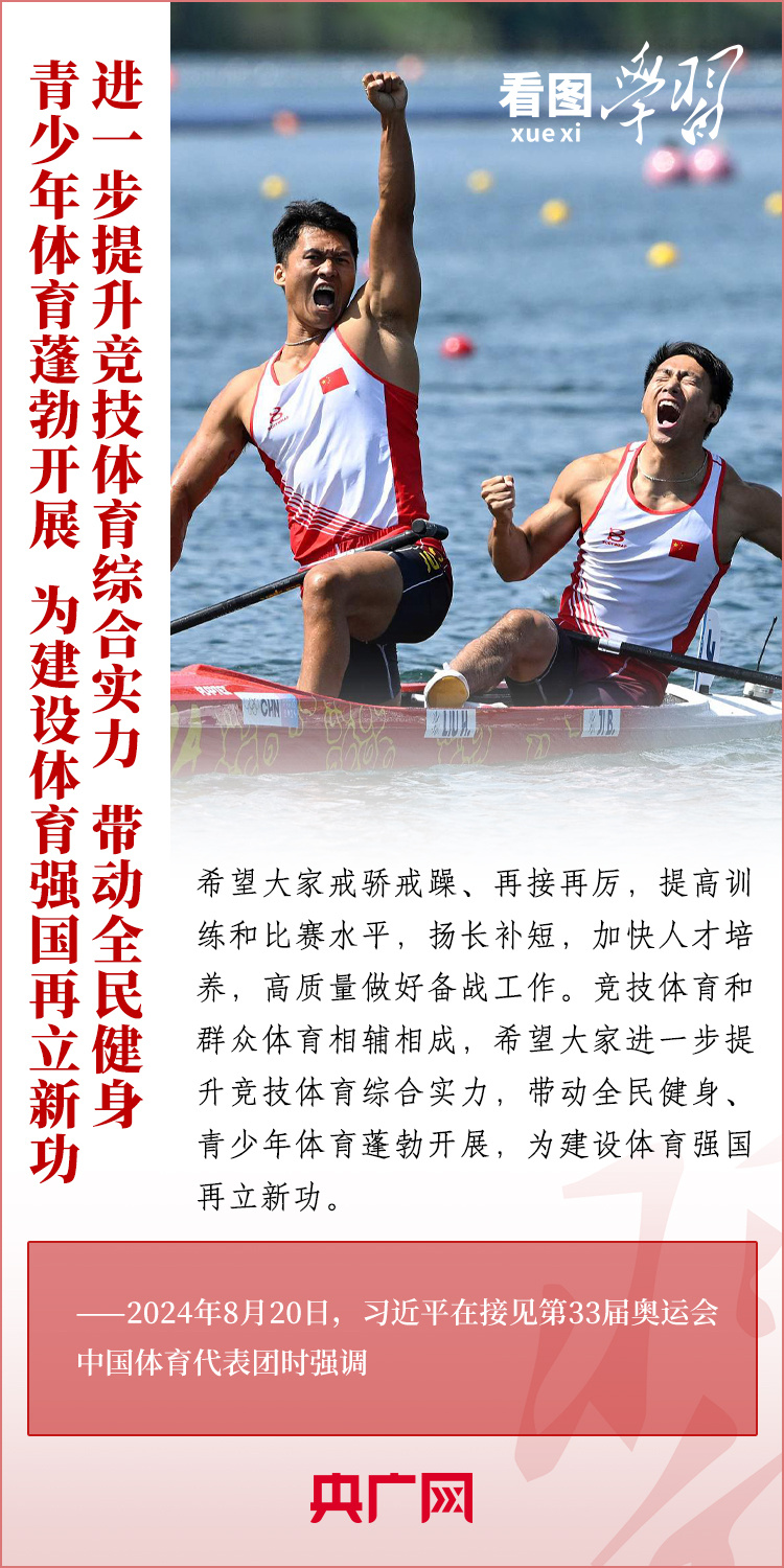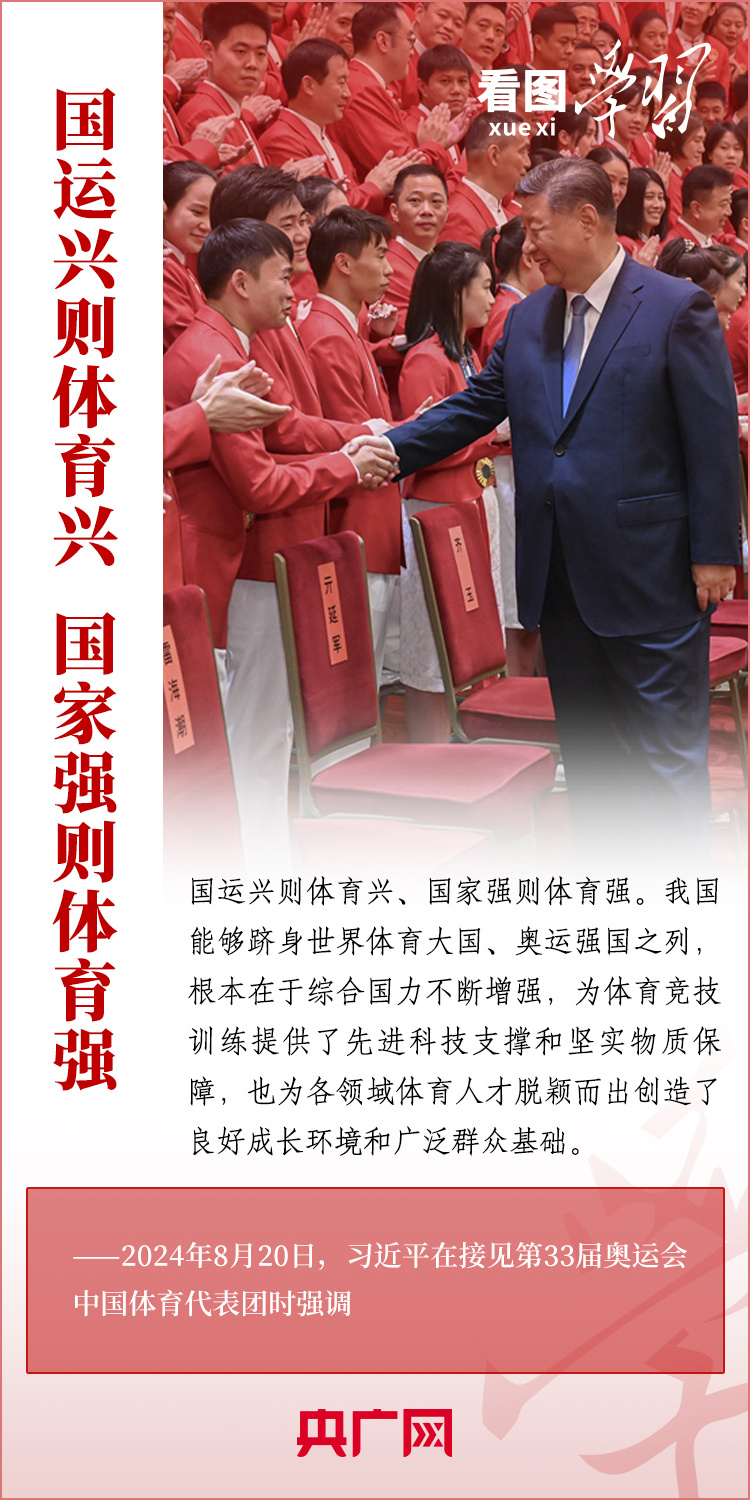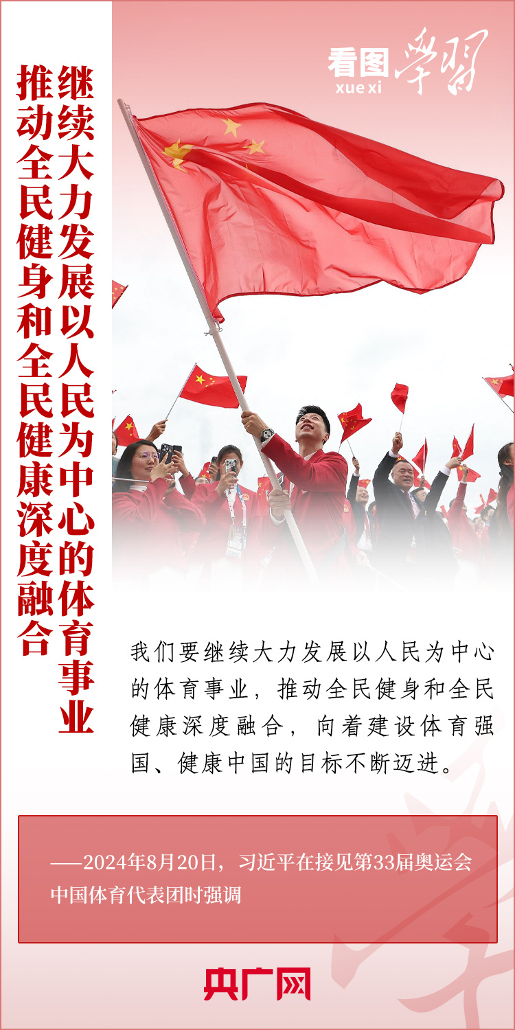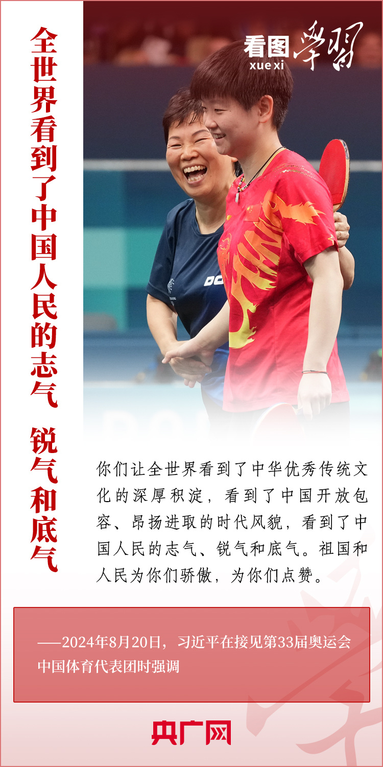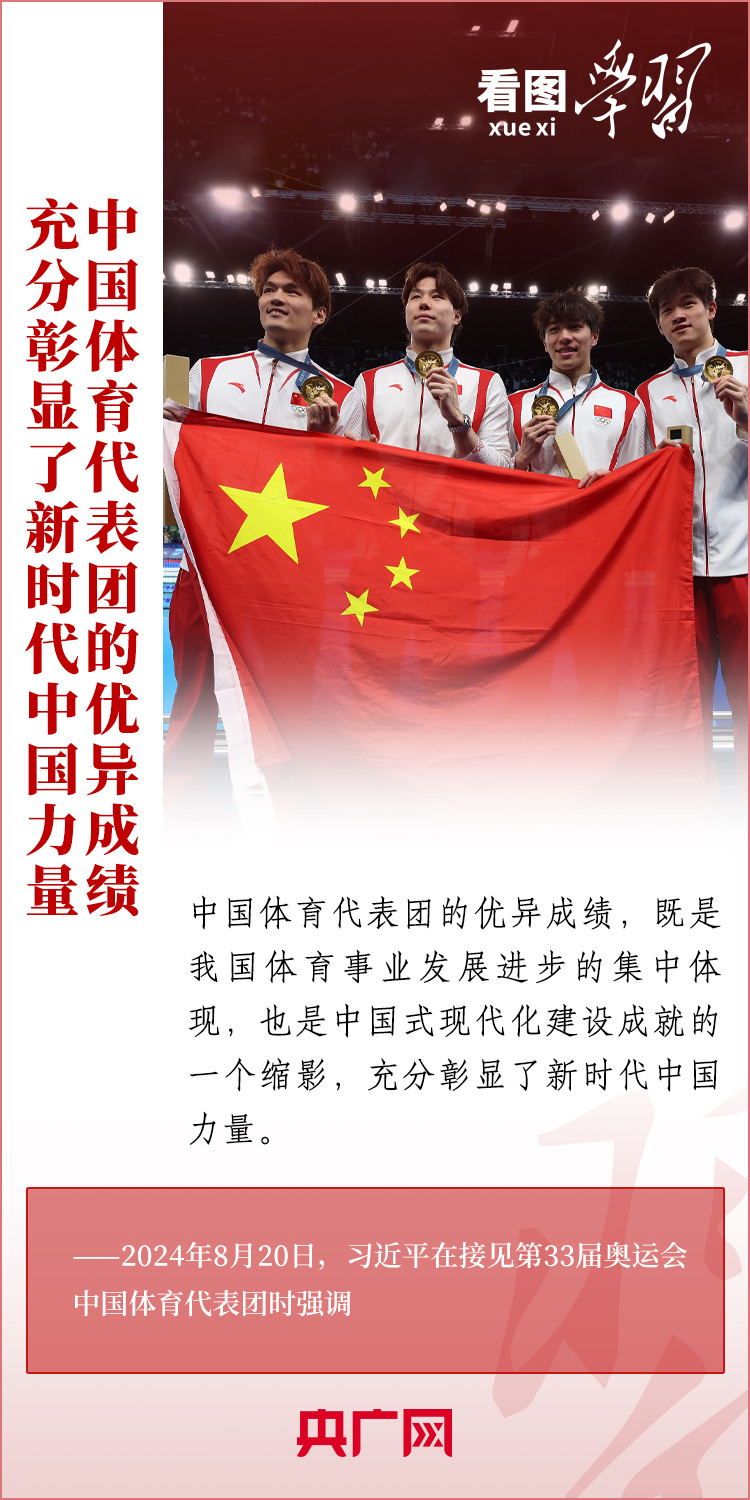 看图学习丨彰显新时代中国力量、中国精神、中国形象 总书记为他们点赞 稿源:央广网2024-08-23 15:48 相链区块链 该文章已上链>> 您的浏览器不支持 video 标签。 您的浏览器不支持 audio 标签。 “祖国和人民为你们骄傲,为你们点赞。”8月20日,习近平总书记在人民大会堂接见第33届奥运会中国体育代表团并发表重要讲话。总书记高度肯定中国体育代表团取得的优异成绩,赞扬他们充分彰显了新时代中国力量、生动诠释了新时代中国精神、充分展现了新时代中国形象,勉励大家戒骄戒躁、再接再厉,为建设体育强国再立新功。一起来学习! 【作者:】 【编辑:易隽】 长沙晚报社版权声明 关键词:习近平 >>我要举报