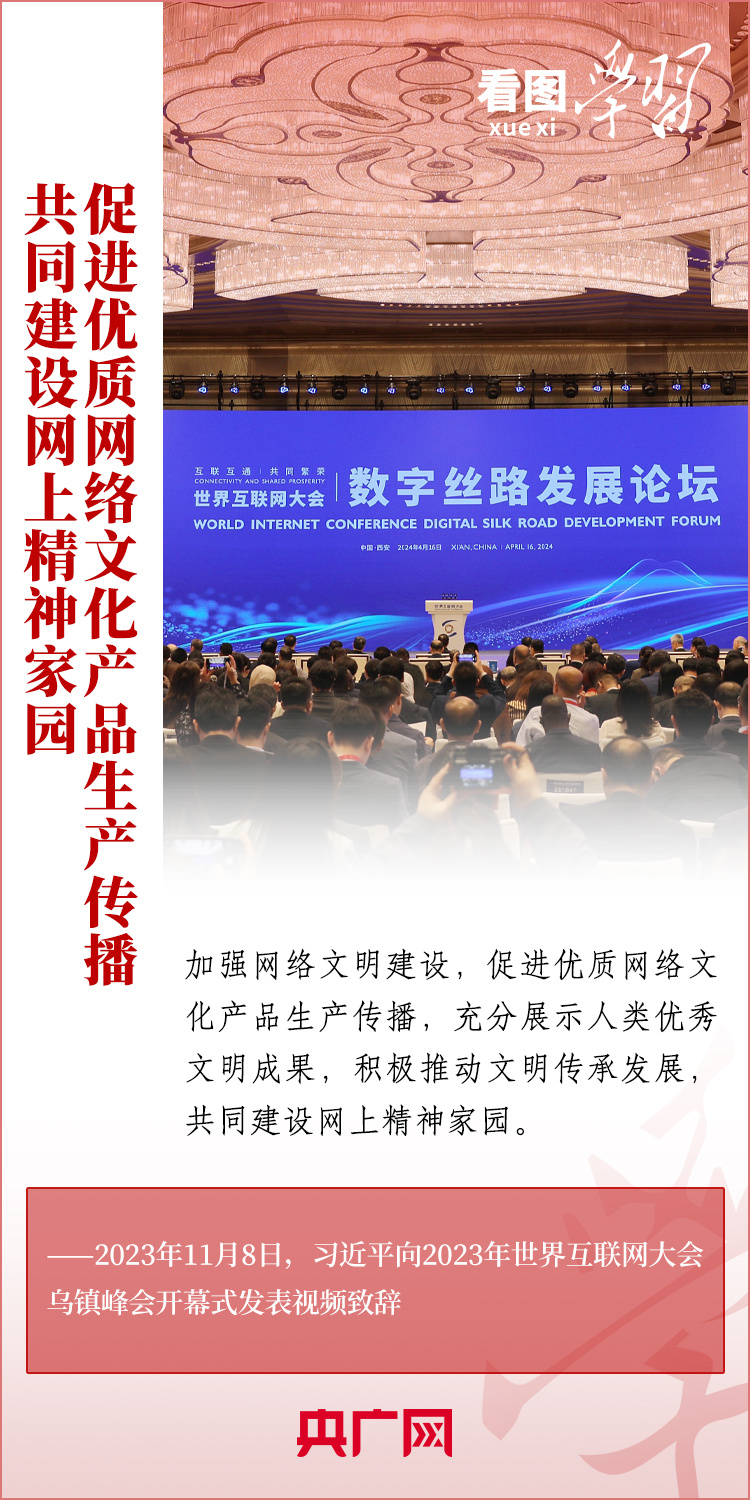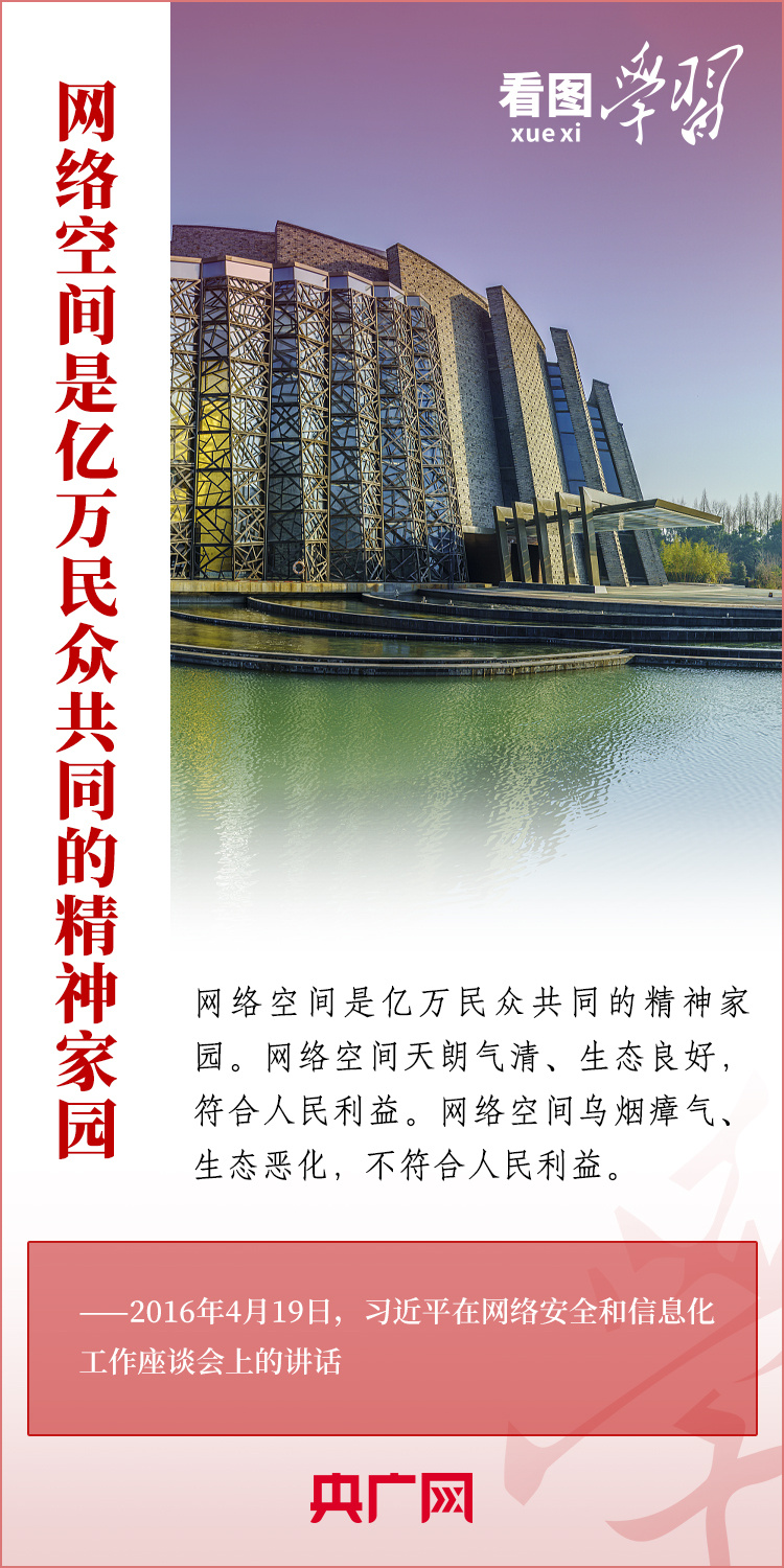 “坚持发展和治理相统一、网上和网下相融合,广泛汇聚向上向善力量”“共建网上美好精神家园”。习近平总书记格外重视网络空间这一亿万民众共同精神家园的建设,围绕网络文化和网络强国建设作出了一系列重要深刻论述。