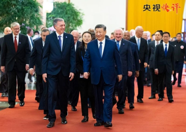 10月11日,国家主席习近平在北京人民大会堂集体会见出席中国国际友好大会暨中国人民对外友好协会成立70周年纪念活动的外方嘉宾。习近平指出——