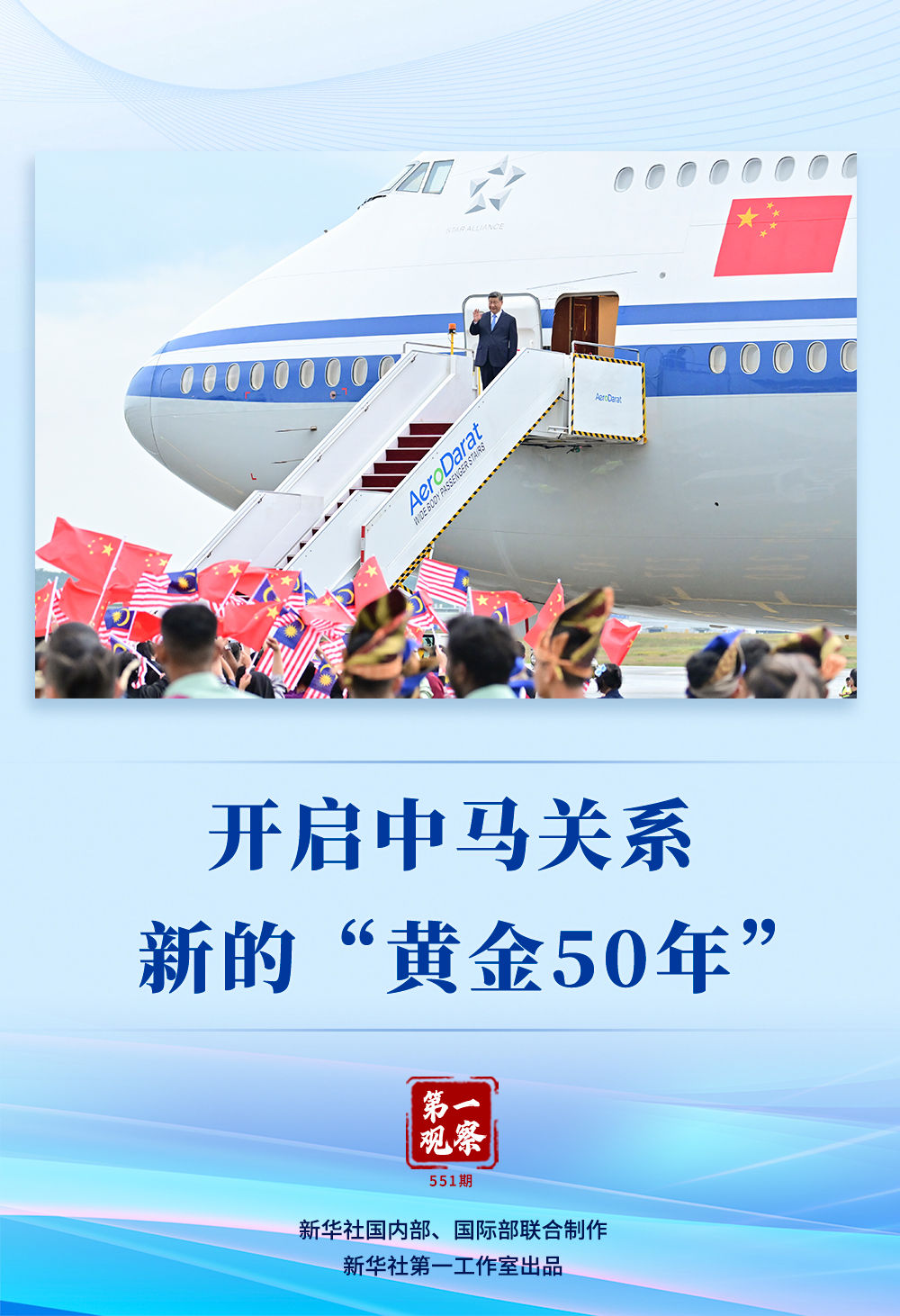 从15日晚抵达吉隆坡国际机场发表书面讲话,到16日上午会见马来西亚最高元首易卜拉欣,再到16日下午同安瓦尔总理会谈、16日晚出席安瓦尔总理举行的欢迎宴会,习近平主席多次以“黄金50年”“下一个50年”关键词,道出“中马友好顺应历史潮流,未来可期”的广阔前景。