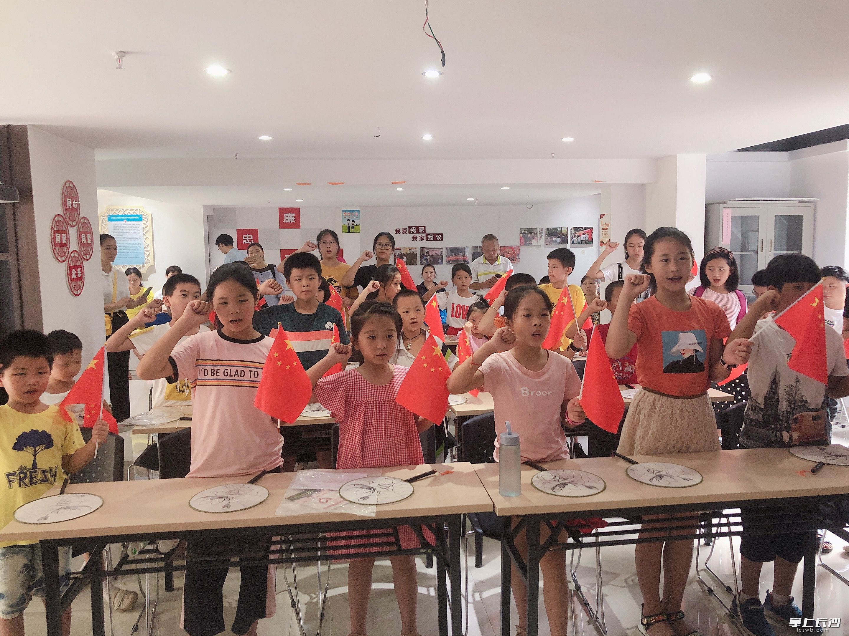 活动中,志愿者先是用生动的语言配合PPT展示引发大家对香港暴乱事件的讨论,老师告诉孩子们有国才有家,国是千万家,没有一个安定繁荣的社会环境,我们的小家也不会和谐融洽。现场的孩子们专注而投入,家长们也在积极交流学习,共同庄严宣誓,喊出“我们都是护旗手”的口号。为了让大家进一步认识到爱家也是爱国,廉洁家风的重要性,志愿者还组织家长和孩子们开展了共同学习廉洁家风古诗词,“清风徐来,手绘莲开”团扇绘画等活动,琅琅诗词声中,孩子们在扇面上绘制莲花,用生动的笔触勾画出一幅幅生长在心中的“廉洁梦”。