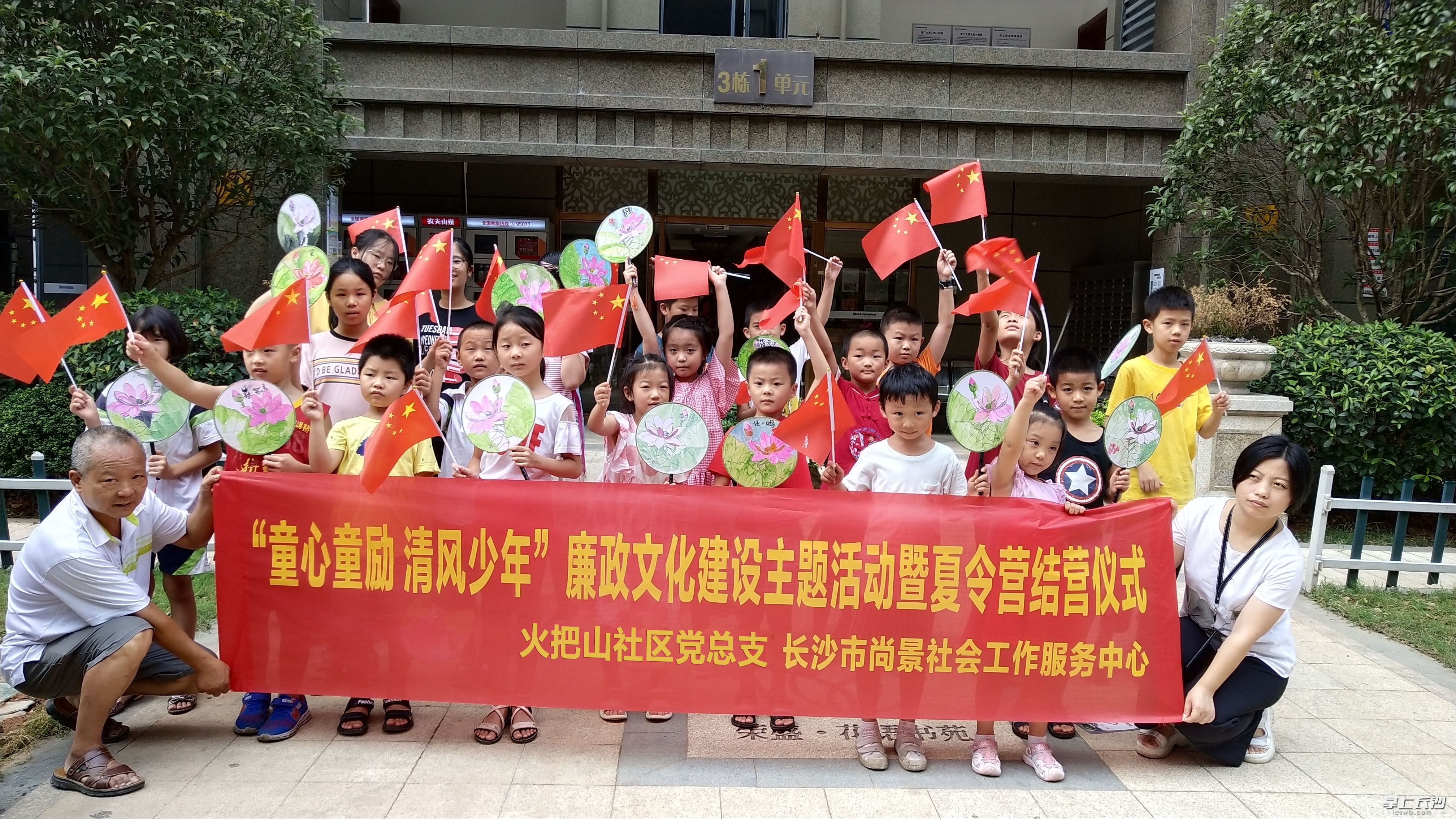 长沙晚报掌上长沙8月23日讯(通讯员 彭彦伟 全媒体记者 匡春林 )“我们都是中华人民共和国的公民,我们愿意做一名中华人民共和国国旗的护旗手,发誓坚决同一切分裂祖国的敌对势力和民族败类作斗争,坚决同一切违法犯罪行为作斗争,坚决拥护祖国尊严!”掷地有声的誓言从火把山社区多功能活动室传出。8月23日上午,天心区火把山社区携手尚景社会工作服务中心组织开展了“童心童励,清风少年“清风亭廉政文化建设暨暑期夏令营结营仪式。