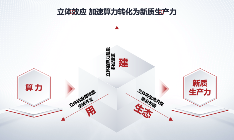 应对复杂的计算需求,中科曙光提出“立体计算”,强化“建、用、生态”三维协同发力,构成全新计算体系。力求以立体算力建设、立体应用赋能、立体生态共生,加速算力转化为生产力,进而释放各行业、各区域的发展力。