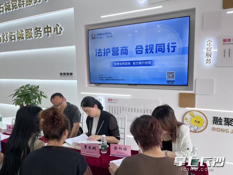 4月11日上午,在芙蓉区湘湖街道党工委委员、人大工委主任彭鹏的帮助下,市场联合湘湖社区,邀请芙蓉区人民法院、人和律师事务所开展“法护营商 合规同行”法务咨询专项活动。