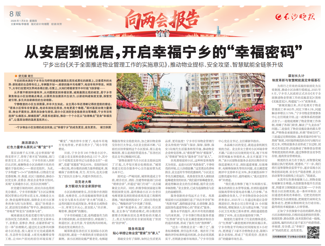 从筑牢红色堡垒凝聚人心,到物业提标破解安全难题;从创新服务提升生活温度,到建章立制赋能长远发展——宁乡的物业小区治理实践,是一条环环相扣、层层递进的系统改革路径。它把党的组织优势转化为治理效能,把制度约束转化为服务动力,把群众期盼转化为行动目标,最终将技术赋能融入日常管理。
