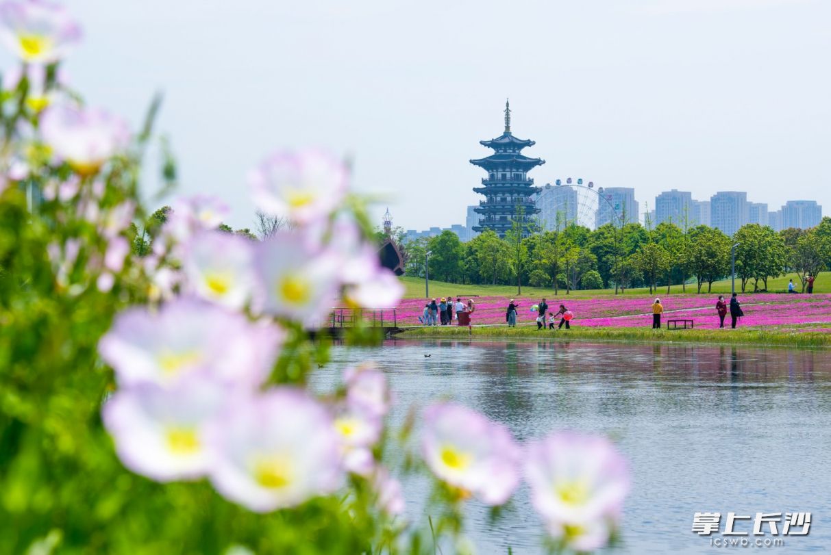 市民们畅游在洋湖湿地公园美丽的花海中