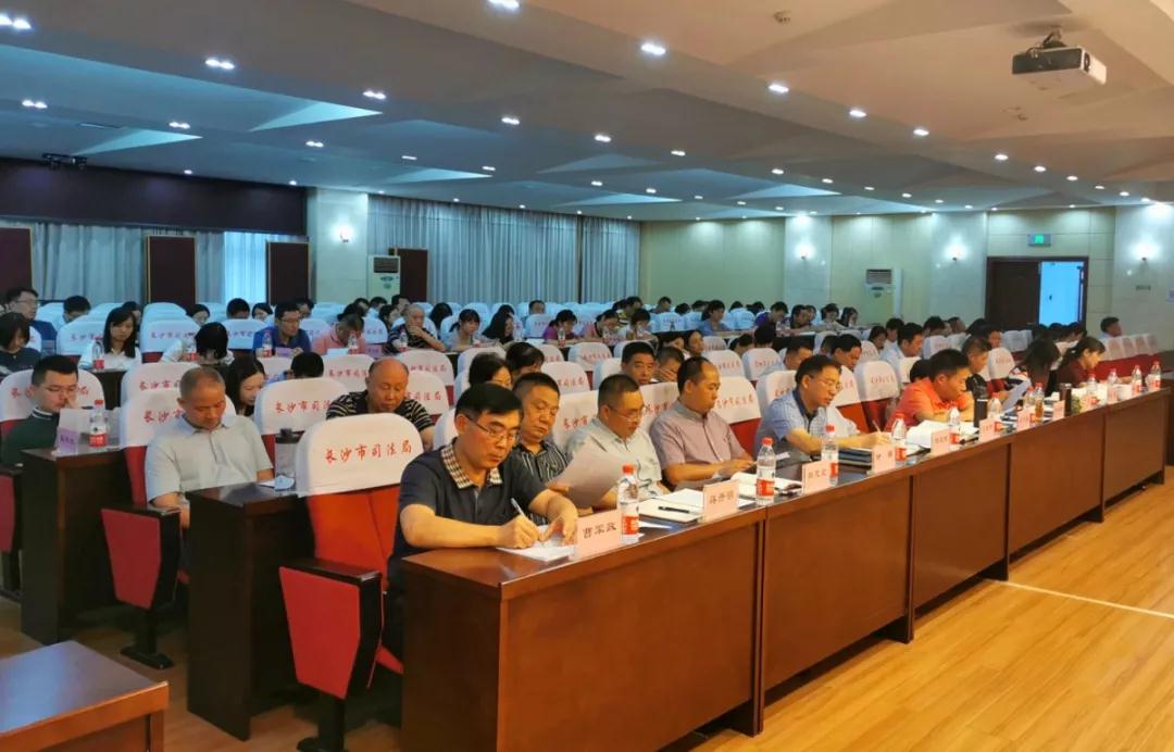 会议由市司法局党委委员、副局长喻中文主持。市司法局全体班子成员;坪塘监狱、长桥强戒所、星沙强戒所党政主要负责人;长沙公证处、星城公证处、麓山公证处、市新城学校主要负责人;市律协党委专职副书记;长沙仲裁委秘书处主要负责人;市司法局机关全体干部职工参加会议。