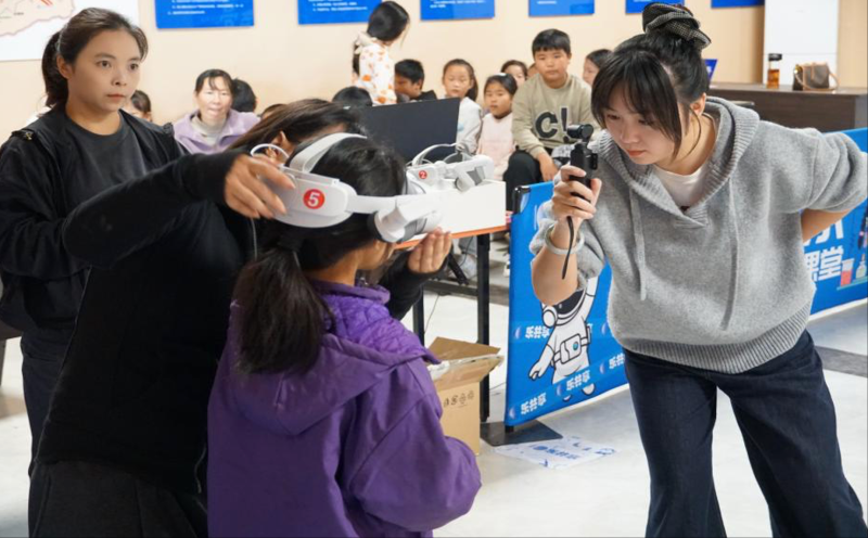 田心村“双屋融通”试点书屋则是科技赋能的活力舞台,11月15日,“小乐点亮计划”科技下乡公益巡展在此举办,吸引了80余名中小学生和家长踊跃参与。“太神奇了!仿佛真的在太空行走,现在特别想探索更多科学奥秘。”一名同学兴奋地分享体验。孩子们戴上XR设备,瞬间“穿越”至火星表面、深海秘境,在虚拟场景中直观感受科学的奇妙,现场惊叹声此起彼伏。手工体验区同样热闹,孩子们以书中角色为灵感,将科技体验激发的想象力融入创作,在手提包上绘制文学形象,实现了阅读、创意与实践的有机结合。“今天和孩子一起参加活动,我们有了更多共同话题。这种寓教于乐的方式特别有意义。”一位家长在参与后感慨道。活动不仅拓展了孩子们的视野,更搭建起亲子沟通的新桥梁,让科技与文化在互动中浸润心灵。