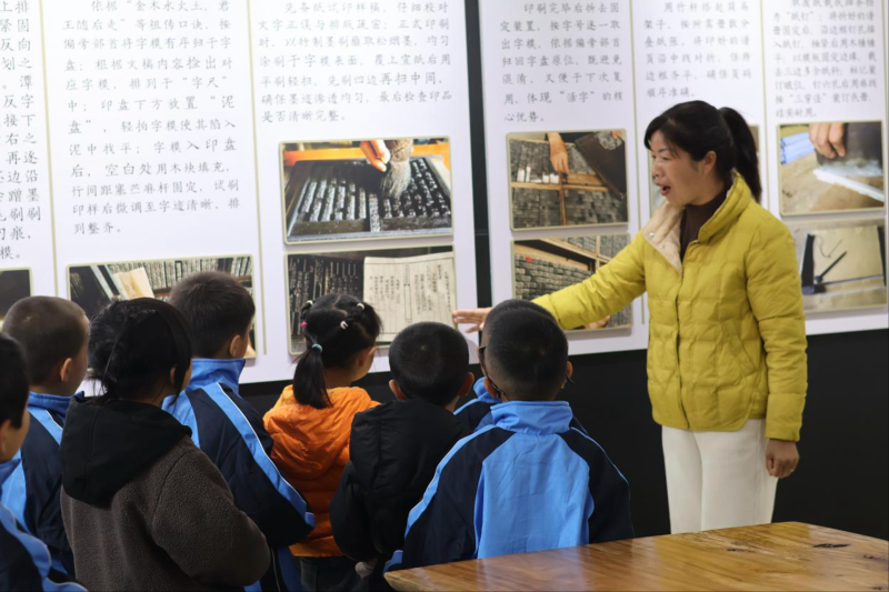 12月11日上午,严坪小学近50名师生在小河乡潭湾村列宁图书馆内,开启参观学习之旅。师生们跟随讲解员,依次走进非遗展示馆、木活字印刷体验馆、客家山歌传习所以及红色主题区域,亲手触摸古朴字模、聆听民俗故事、哼唱悠扬山歌、感悟革命岁月,在沉浸式体验中感受传统文化与红色基因的魅力。