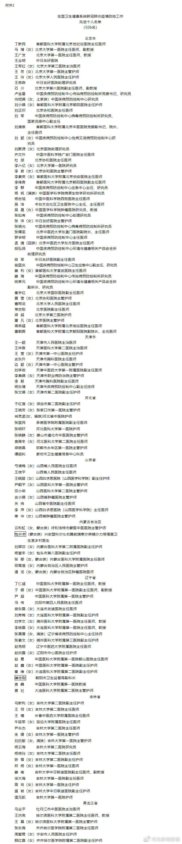 三部门表彰新冠肺炎疫情防控工作先进集体和个人(名单)
