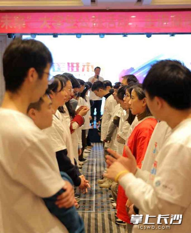 活动现场,来自长沙各高校的大学生学员们被分为多个小组,每个小组推举出一名队长,在队长的带领下一起设计团队logo、海报、队名和队歌。每位成员都出谋划策,凝心聚力为团队建设添砖加瓦,体现的不仅仅是个人的智慧,同样也彰显着每个人的团队责任与担当。