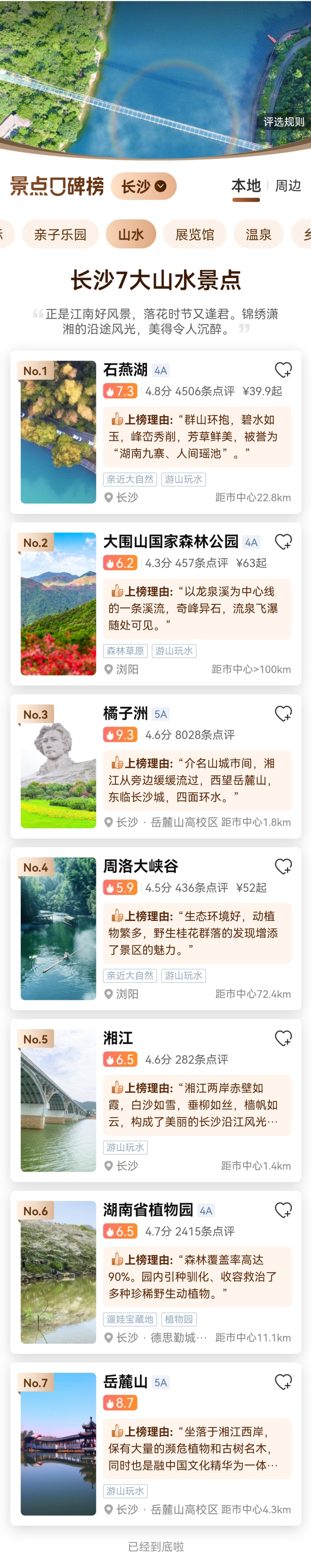 长沙晚报掌上长沙2月9日讯(全媒体记者 周游)近日,2022携程口碑榜年榜发布,坐落于雨花区的石燕湖景区荣获长沙年度·山水景点第一,大围山国家森林公园、橘子洲、周洛大峡谷、湘江、湖南省植物园、岳麓山分列第二至第七位。