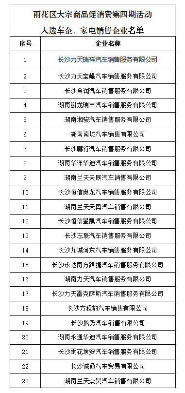 长沙晚报掌上长沙1月15日讯(全媒体记者 周游)随着元旦、春节消费旺季的来临,雨花区汽车、家电促消费活动再度加码。记者今日从雨花区商务局获悉,“雨”众不同 “花”样消费——2025年大宗商品促消费活动第四期于2025年12月29日正式启动,将持续至2026年1月28日。本期活动继续面向在雨花区指定车企购买家用新车,或在参与活动的家电销售企业购买指定家电的个人消费者,发放面值不少于500元的油电储值卡,以“真金白银”的补贴激发跨年消费活力。