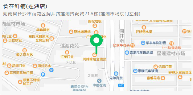 地址:雨花区洞井路莲湖汽配城东门(地图导航到食在鲜铺莲湖店即可)