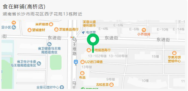 地址:雨花区马王堆南路西子花苑拐角处(地图导航到食在鲜铺高桥店即可)