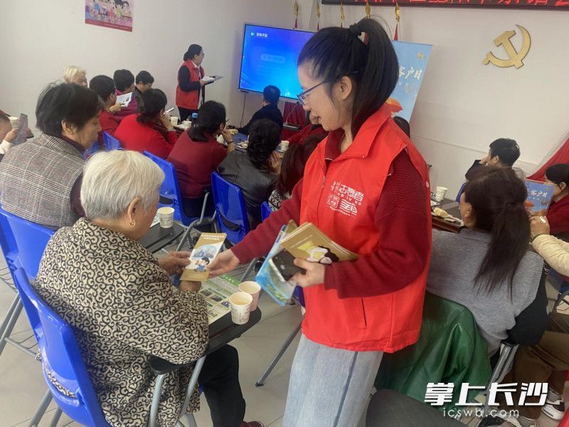 在互动环节中,社工通过轻松有趣的重阳热身游戏迅速拉近了彼此距离,现场欢声笑语不断。反诈有奖问答环节,来自长沙联通的志愿者们通过互动问答帮助老年朋友们巩固防诈知识,筑牢安全防线。在扭扭花DIY手工制作中,老人们兴致勃勃地发挥创意,志愿者们则在一旁耐心协助,共同制作出独具特色的小雏菊,现场气氛温馨融洽。此外,为增加辖区老年居民的科普知识、提升安全意识,现场志愿者、网格员还向老人们宣传了城乡居民医保、防诈禁毒、燃气安全、消防安全、垃圾分类等政策与知识。