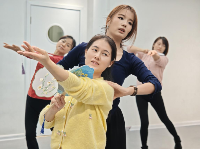 课程以《繁花》《如梦江南》节选为教学内容,吸引众多舞蹈爱好者全程参与,在近一个月的相伴中,大家以舞为媒,收获技艺与友谊,让邻里温情在舞步间不断传递。专业老师针对学员零基础特点,从“提、沉、冲、靠”的古典舞基础体态训练开篇,用“花瓣舒展”“柳枝轻摇”等生动比喻拆解动作要领。教学《繁花》节选时,重点指导手部姿态与眼神流转,尽显柔美韵味;学习《如梦江南》片段则侧重步法轻盈与身形协调,还原江南水乡温婉意境。课堂上,学员们紧跟节拍专注练习,课后主动结对互纠动作、交流练习心得;从初次见面的生疏腼腆,到后期默契配合的欢声笑语,舞蹈室成为邻里相识相知的温馨平台,情谊在一次次共同学习中日渐深厚。
