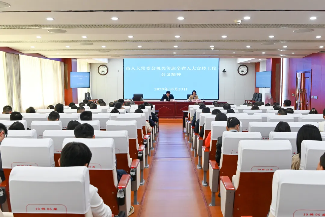 10月23日,市人大常委会机关举行会议,传达全省人大宣传工作会议精神,并开展“人大讲堂·每周一课”。市人大常委会副主任杨长江,市人大常委会秘书长缪晨光参加。市人大常委会副秘书长钟阳媚主持会议。
