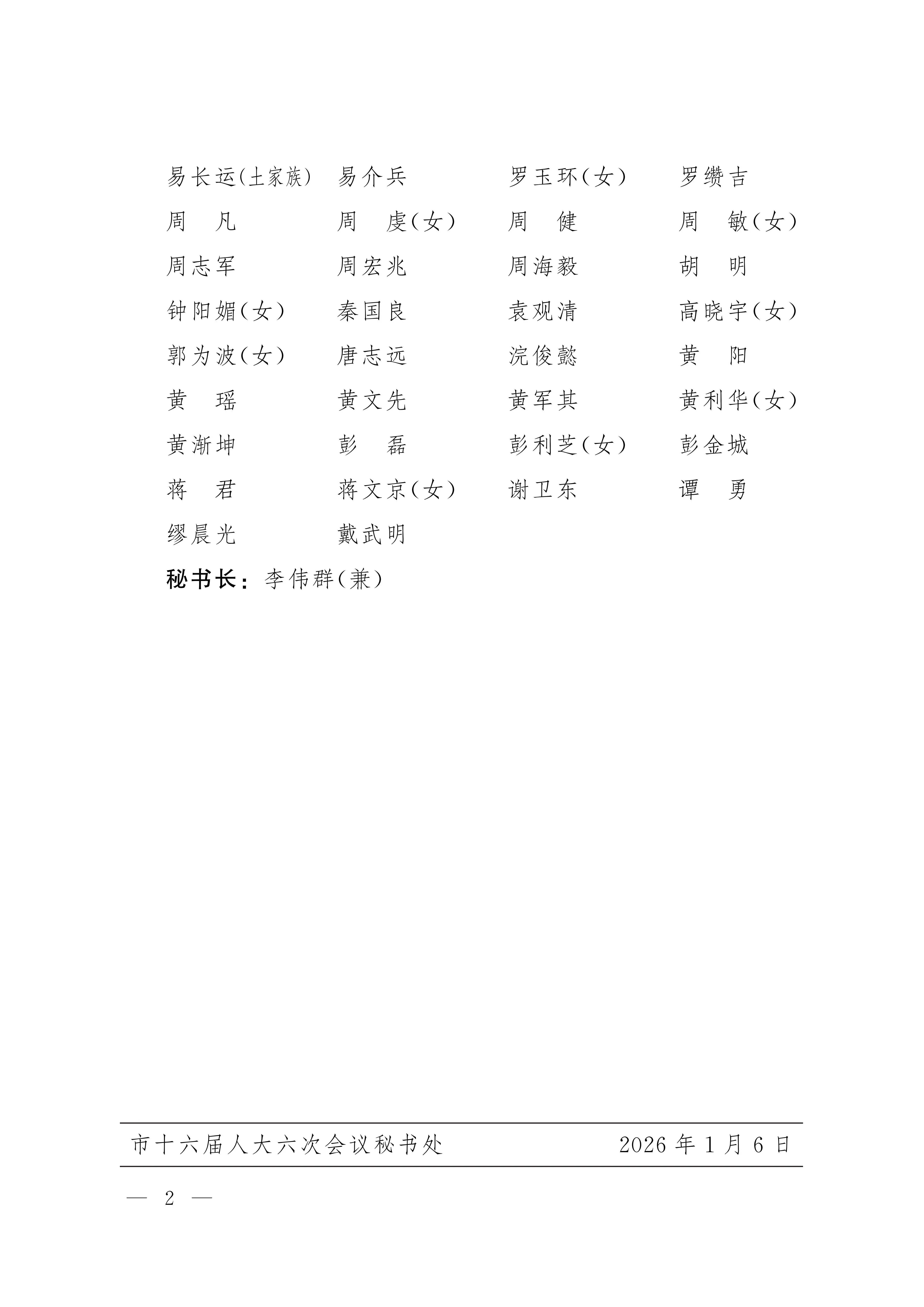 长沙市第十六届人民代表大会第六次会议主席团和秘书长名单