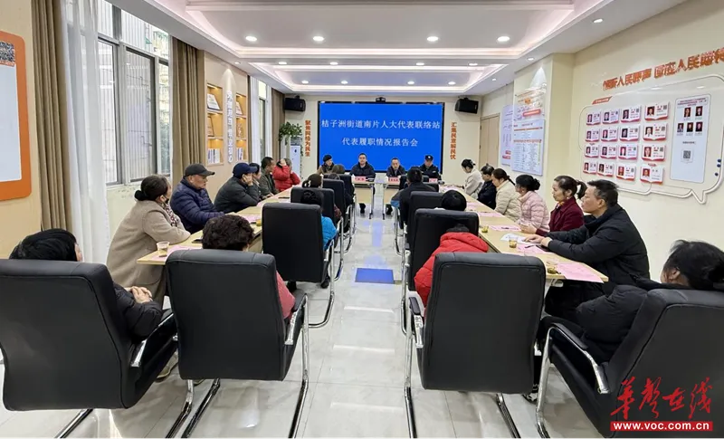 今天的履职情况报告会既保障了选民的知情权、监督权,也增强了代表的履职责任感和主动性。据悉,桔子洲街道南片人大代表联络站常态开展28日代表接待群众日活动,不断夯实“固定站长+轮值站长”双站长制度,持续完善代表线上线下两套台账,今年也引进了“三官一员”,法治护航联络站治理。2025年以来,在人大代表与“三官一员”协同合作下,联络站累计接待选民两百余人次,收集意见建议118条,办结112条,先后接待了各级领导的调研和学习考察团百余场次。在不断的实践与探索当中,联络站的治理能力在不断强化,全过程人民民主也更加可观可感。