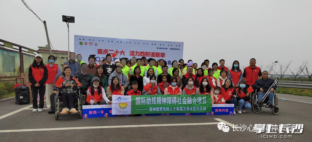 长沙心翼精神康复所组织家属互助会的40余名精神障碍人士家属来到活动现场,向参加活动的学生志愿者、驻足的路人发放资料,随后又走街串户,深入农村基层,以现身说法的形式把一本本《精神卫生法》、《精神障碍政策法规》等100余份资料发放到乡邻们手中。这是长沙心翼精神康复所国际助残精障融合项目针对精神健康残障人士家属设计的,以互助会的形式向社会大众宣传精神健康。