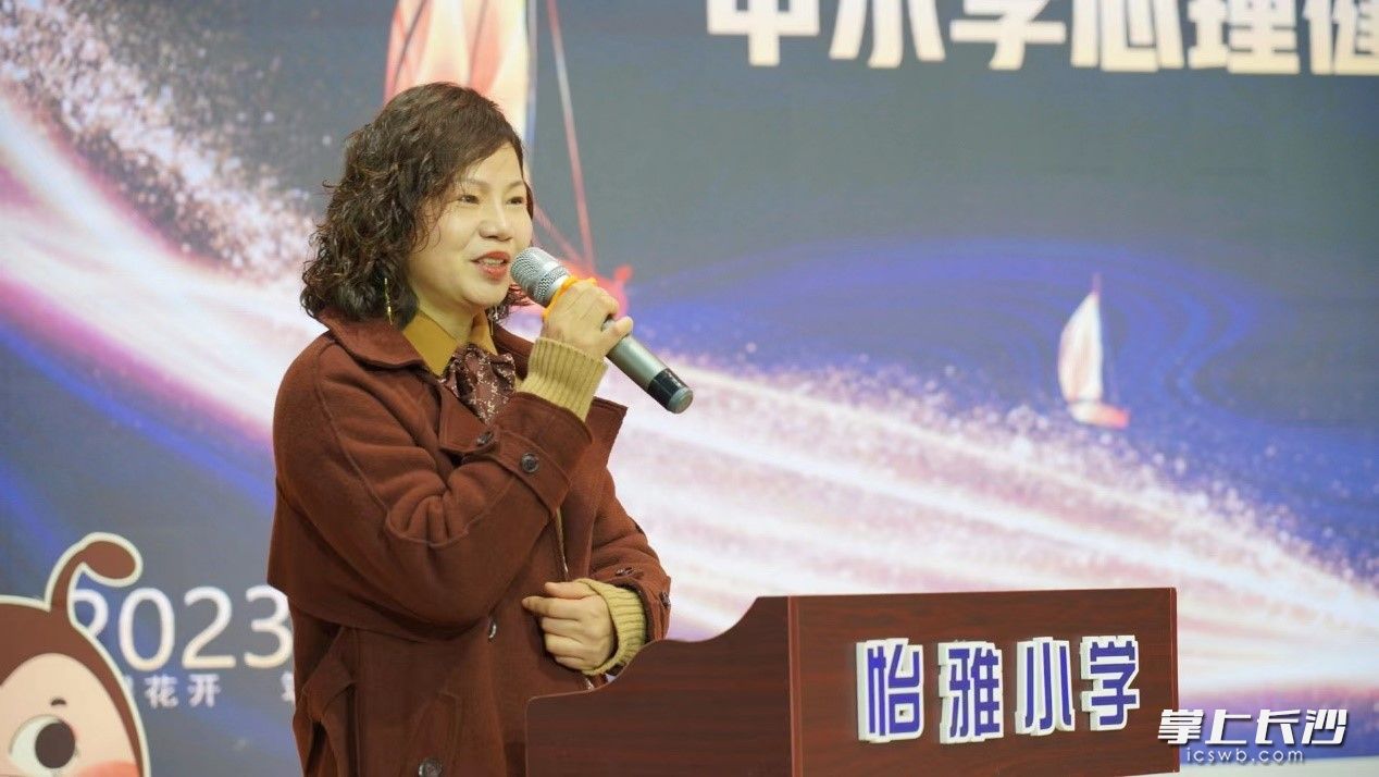 天心区教育科学研究中心万丽英副主任为此次活动致欢迎辞。她寄语老师们:在心理健康教育这条道路上提升专业能力,携手同行为孩子们健康成长撑起一片蔚蓝天空。