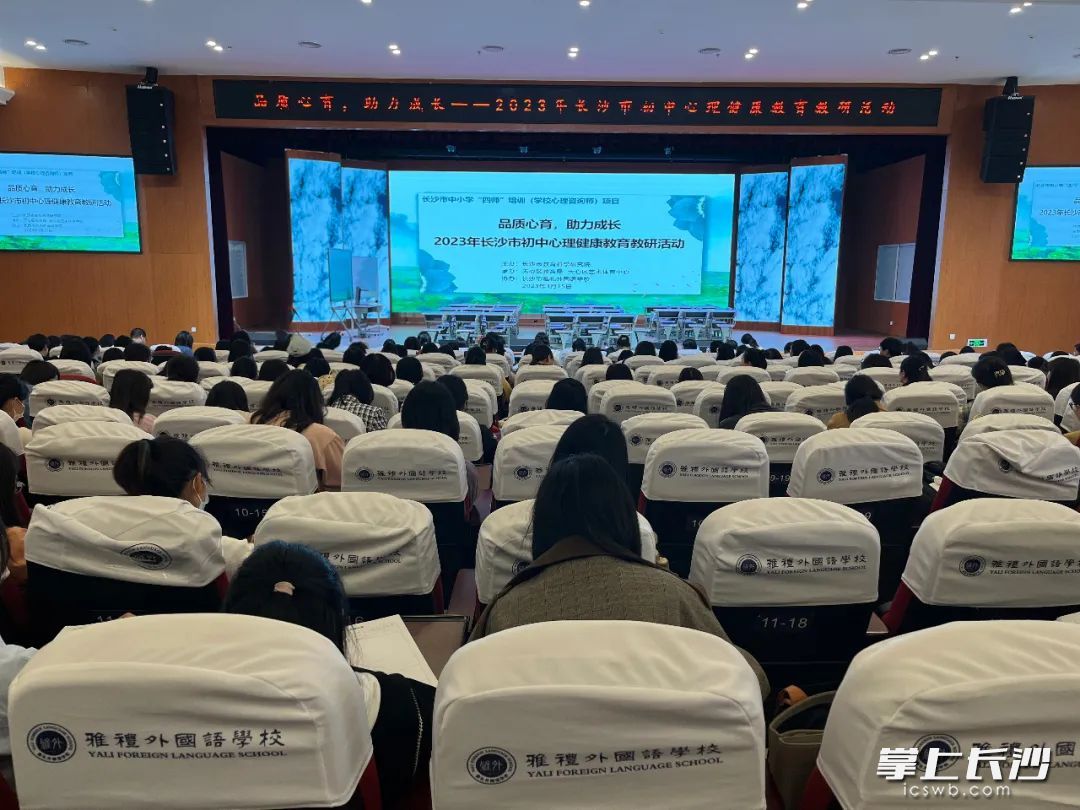 长沙晚报掌上长沙3月20日讯(通讯员 吴敏) 为进一步提升我市心理健康教育学科教师课堂教学水平和能力,展示心理教师的教学基本功与素养,营造心理健康教育教师的教学研讨氛围,15日上午,“品质心育,助力成长——2023年长沙市初中心理健康教育教研活动”在长沙市雅礼外国语学校集雅厅举行。本次活动由雅礼外国语学校心理备课组组长赵美姿老师主持,长沙市心理教研员梁珊老师、长沙市各区县心理教研员,以及全市300余名初中心理教师参加此次教研活动。