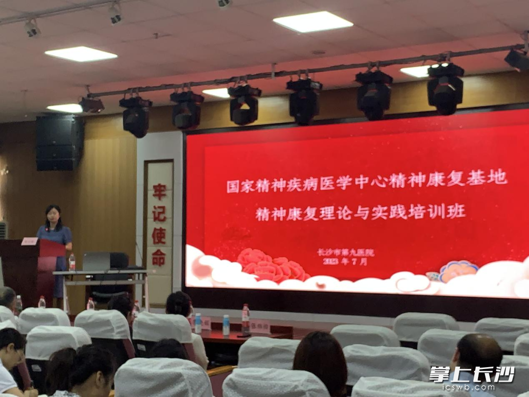 长沙晚报掌上长沙7月14日讯 国家精神疾病医学中心首期精神康复理论与实践培训班于11日在长沙市第九医院举办。此次培训班由中南大学精神卫生研究所和长沙市第九医院联合主办,旨在提升长沙地区精神卫生从业人员理论水平与实操能力,培养一批专业的精神疾病康复从业人员,更好地为精神(心理)疾病患者提供优质的诊疗及康复服务。来自湘雅二医院、长沙市第九医院、雨花区教育局、长沙心翼精神康复所的120余名专业人员参加培训。中南大学精神卫生研究所副所长刘哲宁、长沙市第九医院院长贺吉清出席开班仪式。