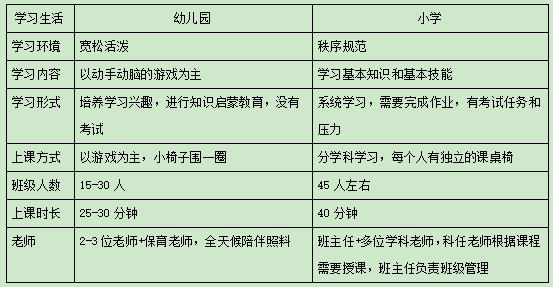 充分了解小学与幼儿园学习生活的不同