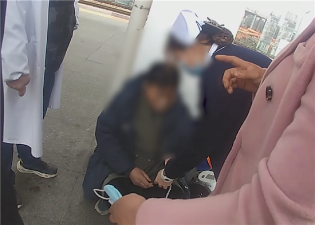 蔡峥赶过来后,没有立即将老人扶起,而是先观察老人头部无明显外伤后,才慢慢托起老人的头部,随后用自己的身体将其顶起摆正。