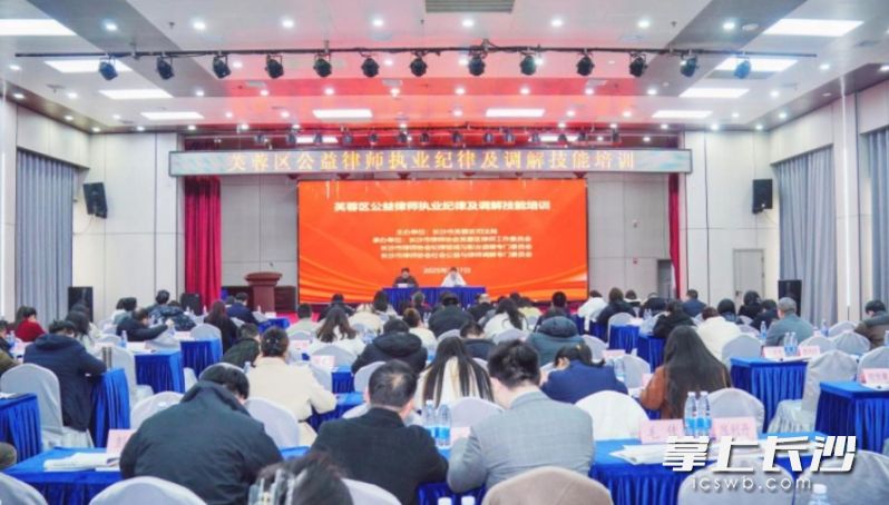 长沙晚报掌上长沙3月8日讯(全媒体记者 周小华)为提升芙蓉区公益律师职业素养,增强执业纪律意识,3月7日,长沙市律师协会芙蓉区律师工作委员会在芙蓉区司法局指导下,举办“律师执业纪律及调解技能提升”专题培训。长沙市律师协会、芙蓉区法院、朝阳街道等单位实务专家老师现场授课,近150名公益律师代表参加培训。