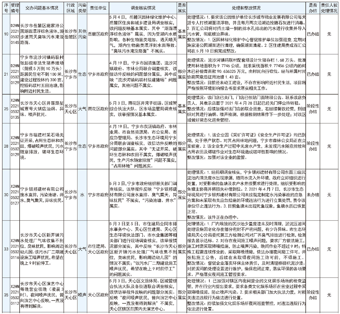 群众信访举报转办和边督边改公开情况一览表(第27批 2021年5月9日)
