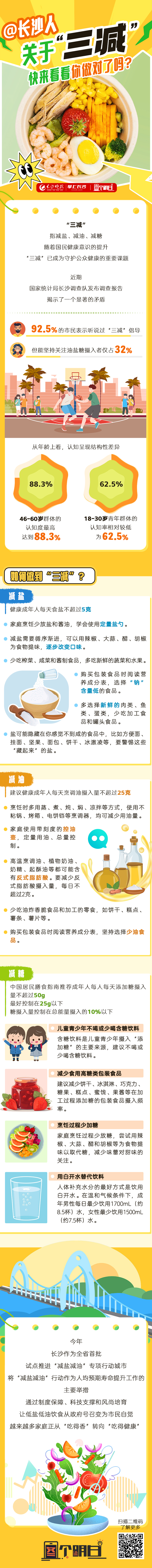 @长沙人,关于“三减”,快来看看你做对了吗?|图个明白 稿源:掌上长沙2025-11-12 23:08 相链区块链 该文章已上链>> 您的浏览器不支持 video 标签。 您的浏览器不支持 audio 标签。 随着国民健康意识的提升,“三减”已成为守护公众健康的重要课题。2025年被定为“体重管理年”,更让科学饮食管理具备了现实意义。那么,长沙市民对“三减”的认知到了哪一步? 如何做到“三减”?一起了解↓作者:李卓卓 刘家婧编辑:曾茜素材来源:长沙晚报、湖南疾控 【作者:李卓卓 刘家婧 曾茜】 【编辑:李卓卓】 长沙晚报社版权声明 关键词: >>我要举报
