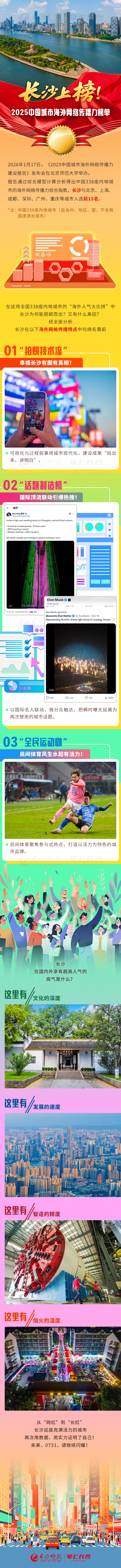 海外人气谁更强?长沙,榜上有名! 稿源:掌上长沙2026-01-23 16:43 相链区块链 该文章已上链>> 您的浏览器不支持 video 标签。 您的浏览器不支持 audio 标签。 当算法遇见长沙,世界正在“刷”到一座充满烟火气的中国城市。长沙用独特的方式,让世界看见!作者:刘可馨 刘家婧编辑:肖文娟 罗敏综合:“长沙发布”微信公众号 【作者:刘可馨 刘家婧 肖文娟 罗敏】 【编辑:刘可馨】 长沙晚报社版权声明 关键词: >>我要举报