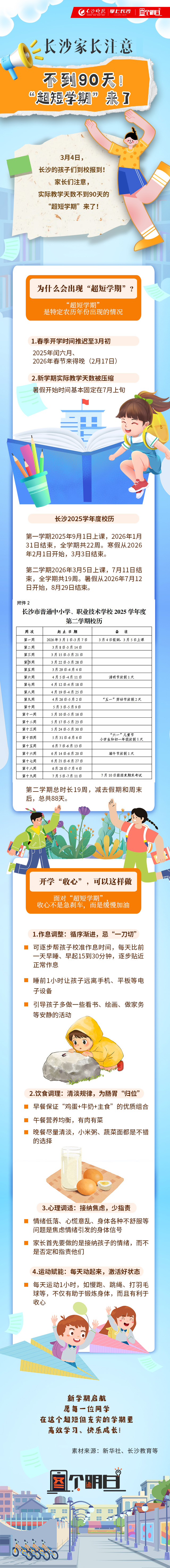 长沙家长注意!不到90天!“超短学期”来了|图个明白 稿源:掌上长沙2026-03-02 15:22 相链区块链 该文章已上链>> 您的浏览器不支持 video 标签。 您的浏览器不支持 audio 标签。 3月4日,长沙的孩子们到校报到!家长们注意,实际教学天数不到90天的“超短学期”来了!作者:谭伟 易昊编辑:曾茜素材来源:新华社、长沙教育等 【作者:谭伟 易昊 曾茜】 【编辑:谭伟】 长沙晚报社版权声明 关键词: >>我要举报