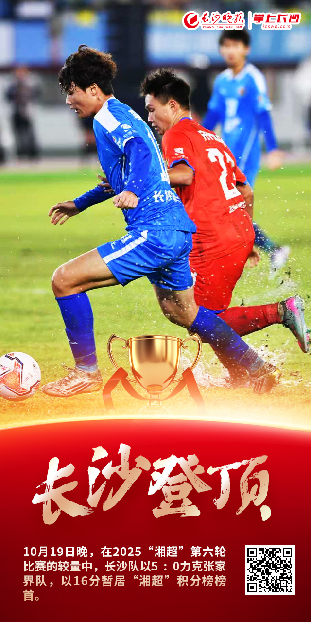 长沙队登顶“湘超”积分榜! | 新闻海报 稿源:掌上长沙2025-10-19 22:27 相链区块链 该文章已上链>> 您的浏览器不支持 video 标签。 您的浏览器不支持 audio 标签。 10月19日晚,在2025“湘超”第六轮比赛的较量中,长沙队客场对战张家界队一球未失、大获全胜,以16分暂居“湘超”积分榜榜首。记者:赵紫名作者:刘可馨 赖立编辑:肖文娟5比0大胜张家界,长沙队坐上“湘超”头把交椅 【作者:刘可馨 赖立 肖文娟 赵紫名】 【编辑:刘可馨】 长沙晚报社版权声明 关键词:湘超 湘超>>我要举报