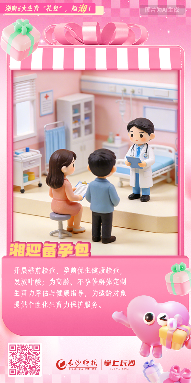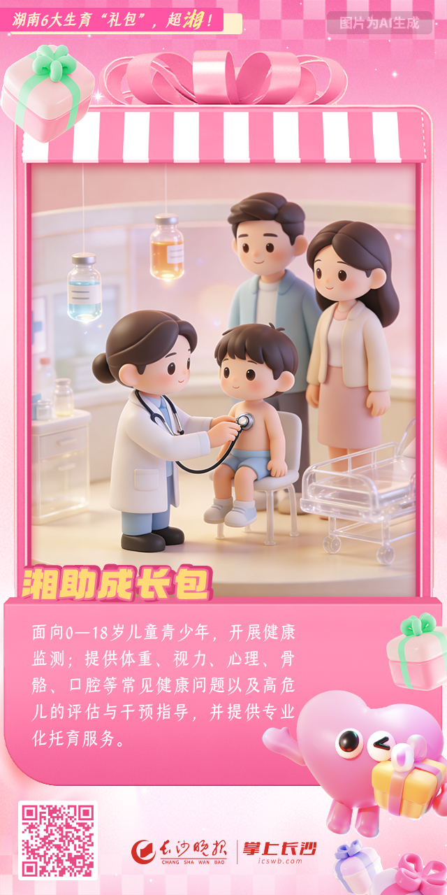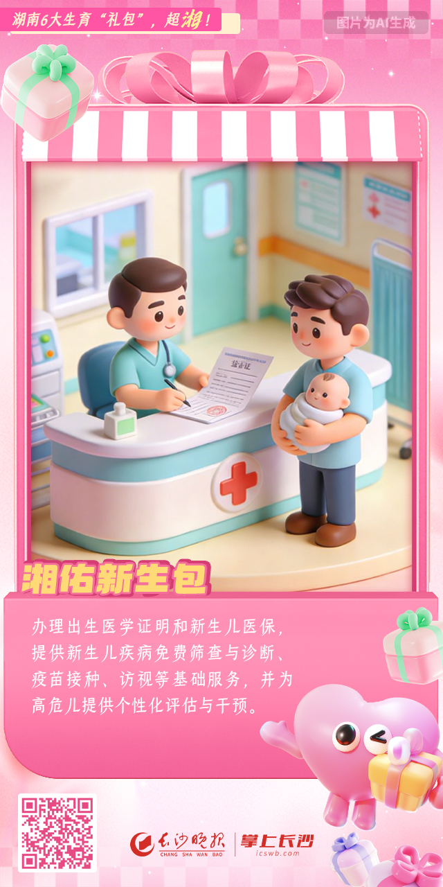 湖南6大生育“礼包”,超“湘”!|AI绘海报 稿源:掌上长沙2026-01-26 15:33 相链区块链 该文章已上链>> 您的浏览器不支持 video 标签。 您的浏览器不支持 audio 标签。 《湖南省生育友好服务包实施方案》近日出台,推出覆盖孕育全周期、儿童青少年成长全过程的6个服务包。湖南推出六大“生育友好服务包”,全周期服务护航家庭健康作者:谭伟 刘家婧编辑:曾茜素材提供:傅容容 【作者:谭伟 刘家婧 曾茜 傅容容】 【编辑:谭伟】 长沙晚报社版权声明 关键词: >>我要举报