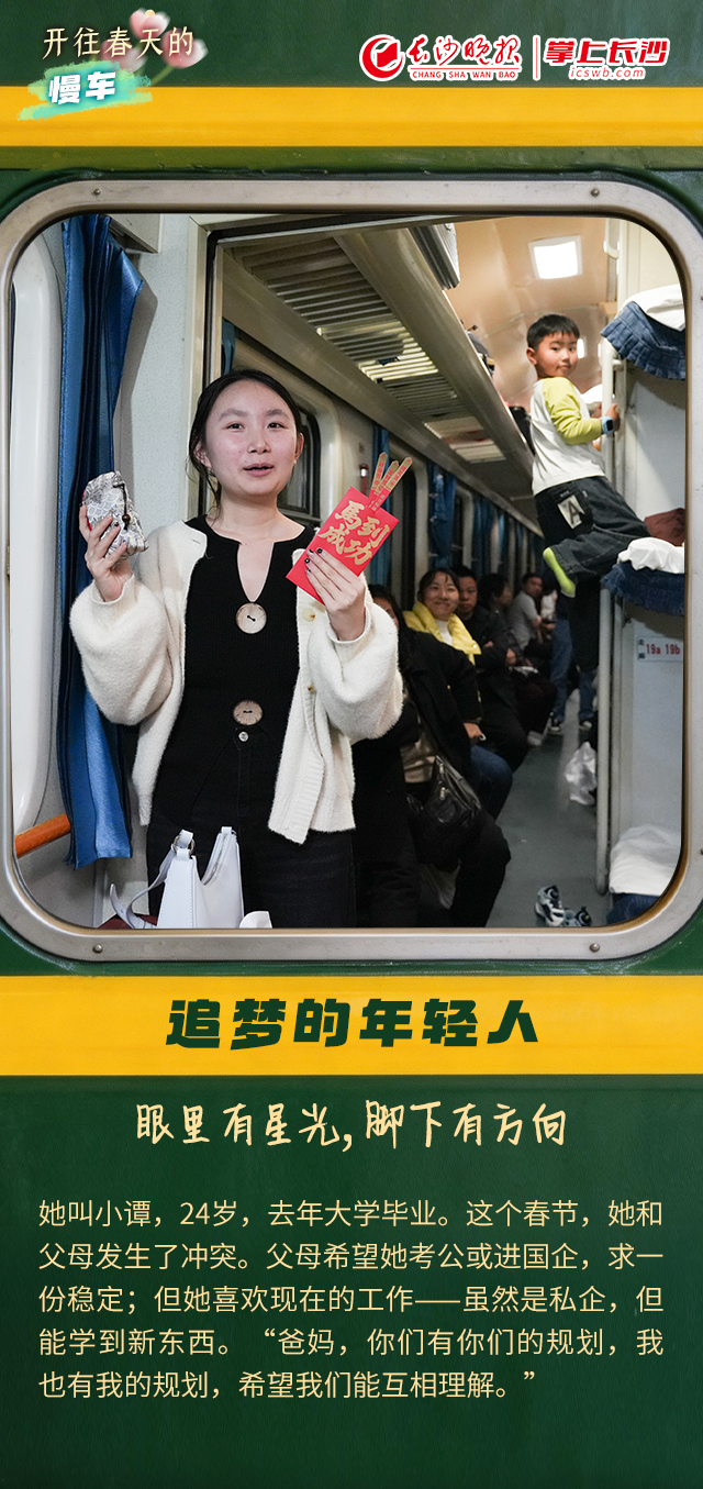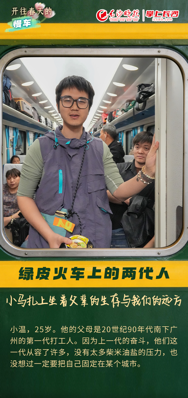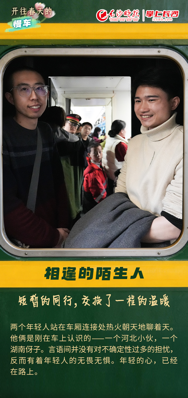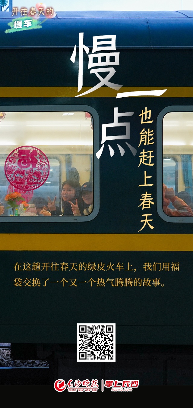 慢一点,也能赶上春天 | 长海报 稿源:掌上长沙2026-03-02 11:25 相链区块链 该文章已上链>> 您的浏览器不支持 video 标签。 您的浏览器不支持 audio 标签。 如果说,高铁代表着中国速度,那么,绿皮火车则依然满载着中国温度。一趟长沙南下广州的绿皮火车,满载复工复产的人们对生活的热望,也写下了速度与温度的答卷。在这趟开往春天的普速列车上,我们用福袋和年轻人交换了一个又一个热气腾腾的故事。 记者:谭琳静 摄影:邹麟 设计:王聘 编辑:黄丽心 肖文娟 【作者:谭琳静 邹麟 王聘 黄丽心 肖文娟】 【编辑:黄丽心】 长沙晚报社版权声明 关键词: >>我要举报