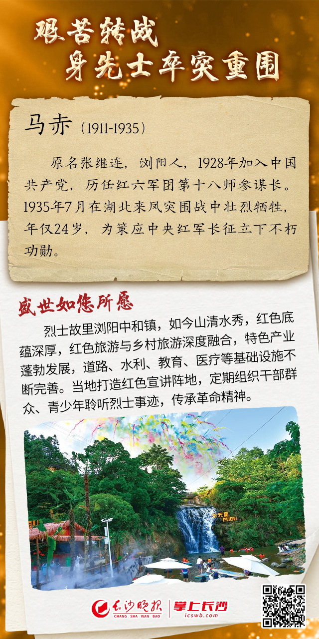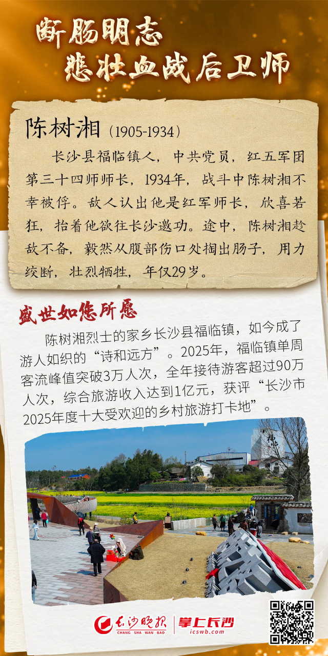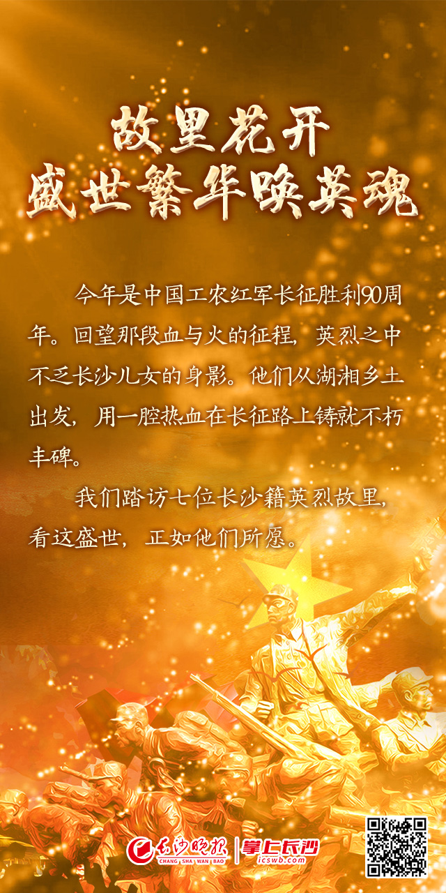 故里花开,盛世繁华唤英魂|海报 稿源:掌上长沙2026-04-05 07:09 相链区块链 该文章已上链>> 您的浏览器不支持 video 标签。 您的浏览器不支持 audio 标签。 今年是中国工农红军长征胜利90周年。回望那段血与火的征程,英烈之中不乏长沙儿女的身影。他们从湖湘乡土出发,把年轻的生命交付给信仰,用一腔热血在长征路上铸就不朽丰碑。故里花开 盛世繁华唤英魂作者:罗敏 王聘 谭伟编辑:罗敏素材来源:掌上长沙 【作者:罗敏 王聘 谭伟】 【编辑:谭伟】 长沙晚报社版权声明 关键词: >>我要举报