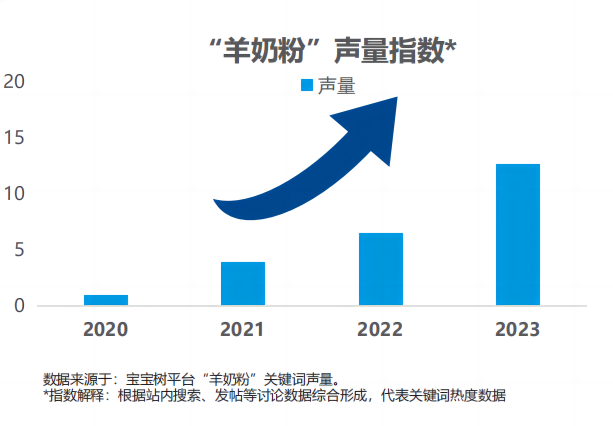 新国标及标识规范等一系列政策的落地,有效净化了市场环境,伴随消费者科学育儿和精细化喂养观念的不断升级,羊奶“营养丰富、更好消化吸收、更低敏”等优势特点如今获得了更广泛的认知,越来越多新生代妈妈开始关注和给宝宝选择羊奶粉喂养。“宝宝树”的大数据也显示:近三年宝宝树平台用户讨论羊奶粉的声量指数增长率在60%以上,以新生代妈妈为代表的母婴人群对羊奶粉的讨论保持持续升温状态。在国家政策和消费趋势双重利好下,羊奶粉行业未来可期。
